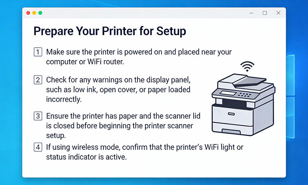 Many printers come with scanning functions, and users often search for printer scanner setup. Follow these steps: